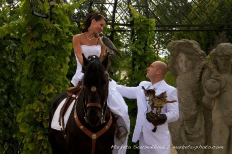 - doprovodný program na Vaši svatbu. Tato nabídka je vhodná pro Všechny, kteří chtějí svou svatbu oživit netradičním programem - ukázkou historického sokolnictví. Cena dohodou, dle rozsahu sjednaných služeb + doprava 15,- Kč/km.